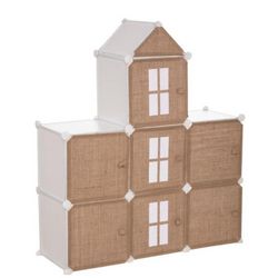 Informations Techniques : Dimensions : L. 94,5 x l. 32 x H. 109 cm Case : L. 30 x l. 30 x H. 30 cm Matières : Fer & Polypropylène Spécificités : Pratique & Utile Rangement Enfant 8 Cases Forme Rectangulaire Design Château A monter soi-même Poids : 5,1 kg Couleur : Beige & Blanc