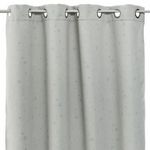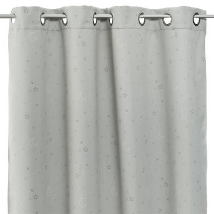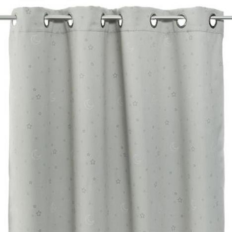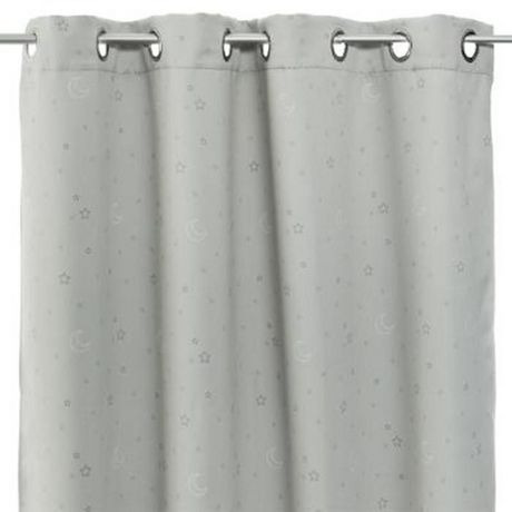 Informations Techniques : Dimensions : L. 140 x H. 260 cm Matière : Polyester Spécificités : Pratique & Déco Rideau Occultant Type de fixation : à Oeillets Imprimés : Etoiles & Lune Poids : 0,930 kg Couleur : Gris