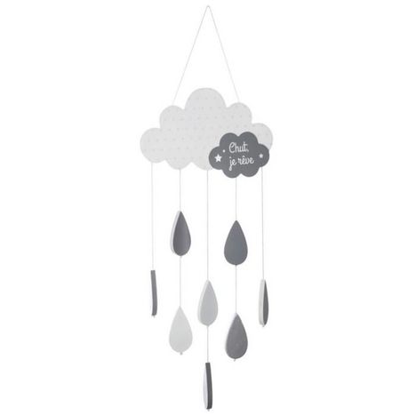Informations Techniques : Dimensions : L. 23,8 x l. 1,3 x H. 57,5 cm Matières : MDF, Coton & Fer Spécificités : Pratique & Déco Élément à suspendre Texte : Chut, je rêve Poids : 0,272 kg Couleur : Gris