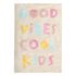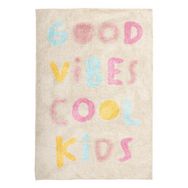 Informations Techniques : Dimensions : L. 150 x l. 100 x H. 2 cm Matière : 100% Coton (542 g/m2) Spécificités : Déco & Coloré Tapis enfant tufté Inscriptions Good vibes cool kids Patin antidérapant Lavable en machine à 30° Poids : 2,05 kg Couleur : Multicolore