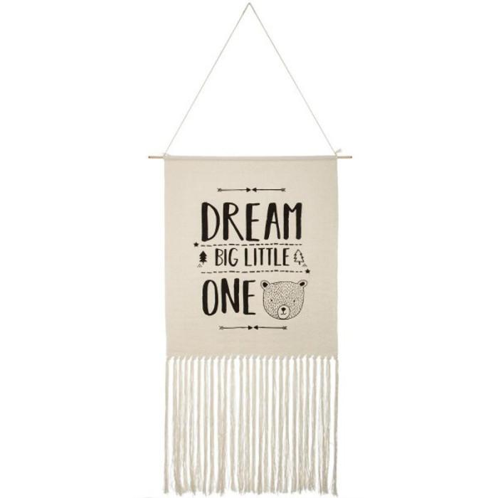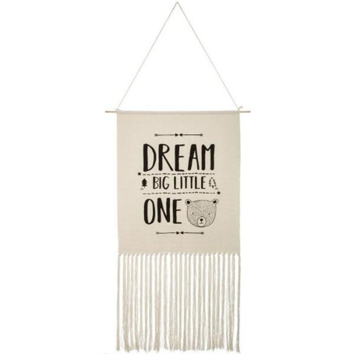 Informations Techniques : Dimensions : L. 109 x l. 50 cm Matières : Polyester, Coton & Bois Spécificités : Design & Tendance Elément à Suspendre Poids : 0,47 kg Couleur : Beige