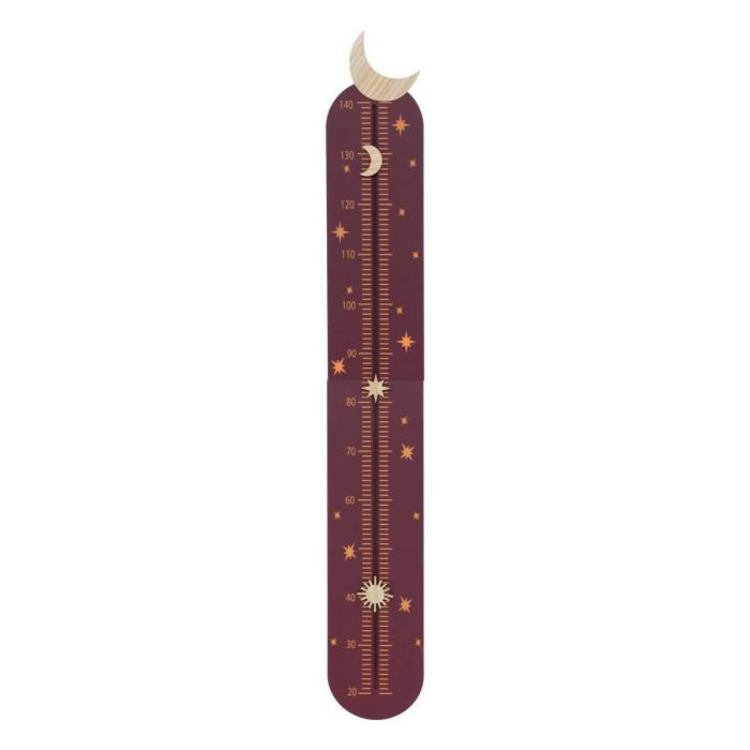 Informations Techniques : Dimensions : L. 20 x l. 1,1 x H. 140 cm Matière : MDF Spécificités : Déco & Utile Toise enfant Imprimé constellations Visserie non incluse Poids : 1,29 kg Couleur : Prune