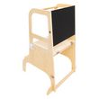Informations Techniques : Dimensions : L. 57,4 x l. 52,25 x H. 91 cm Matière : Bois (Contreplaqué) Spécificités : Stable & Polyvalente Tour d'observation 3 en 1 Pliable et antidérapante Transformable en bureau avec banc Tableau noir intégré À monter soi-même Poids : 6,7 kg Couleur : Naturel
