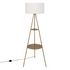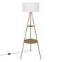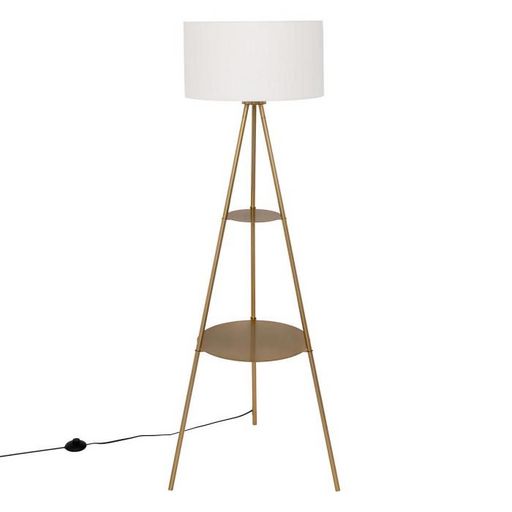 Informations Techniques : Dimensions : D. 48 x H. 163 cm Abat-jour : D. 45 x H. 28 cm Matières : Acier & Tissu Spécificités : Chic & Pratique Lampadaire trépied Avec 2 étagères Abat-jour cylindrique Interrupteur à pied À monter soi-même Douille : E27 Puissance : 25W Poids max supporté : Étagère 1 :