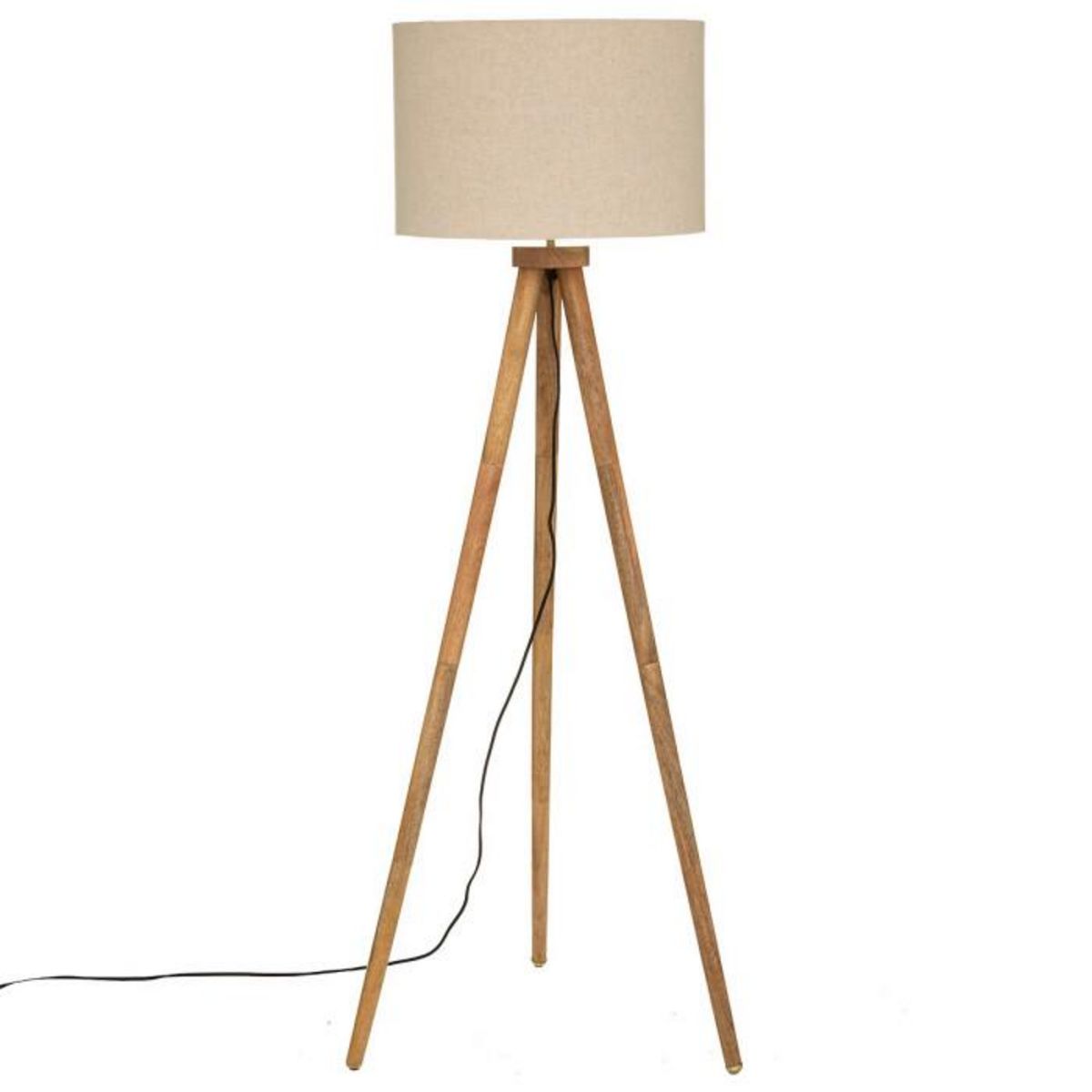 Informations Techniques : Dimensions : D. 60 x H. 150 cm Abat-Jour : D. 45 x H. 30 cm Câble : L. 300 cm Matières : Bois (Manguier), Coton, PVC & Fer Spécificités : Moderne & Tendance Lampadaire Trépied Alimentation Secteur Ampoule non incluse Douille E27 Puissance Maximale : 40W Type de Fixation du