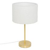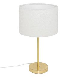 Informations Techniques : Dimensions : D. 28 x H. 49 cm Câble : L. 150 cm Matières : Acier & Polyester Spécificités : Tendance & Utile Lampe à poser design Abat-jour tissu bouclette Interrupteur on/off Ampoule non incluse Douille : E27 Puissance : 25W IP : IP20 Poids : 1 kg Couleur : Or