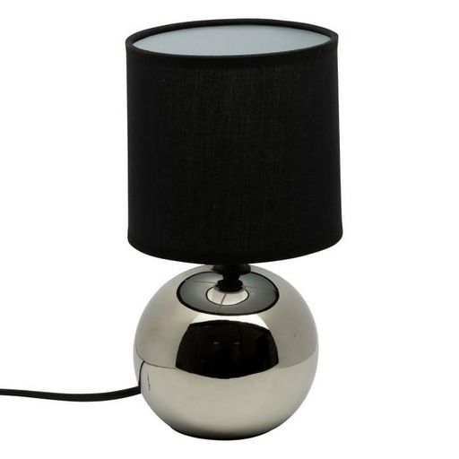 Informations Techniques : Dimensions : D. 13 x H. 25 cm Matière : Grès Spécificités : Pratique & Utile Lampe à poser Design boule Alimentation secteur Interrupteur on / off Forme ronde Douille : E14 Poids : 0,46 kg Couleur : Argent