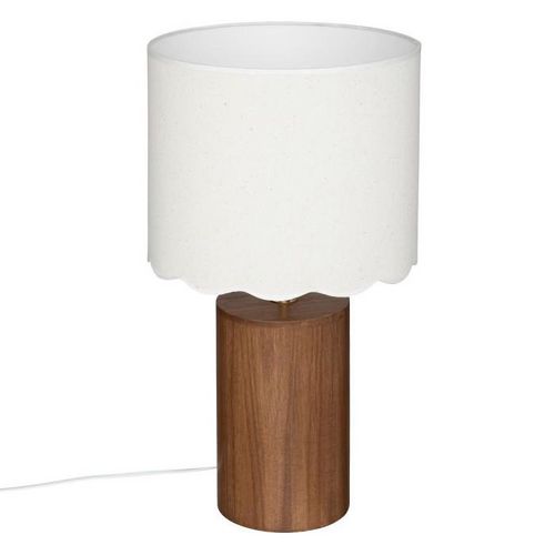 Informations Techniques : Dimensions : D. 28 x H. 50 cm Matières : Bois (Pin), Polyester & Acier Spécificités : Utile & Tendance Lampe à poser cylindrique Abat-jour ondulé Pied en bois de pin Interrupteur on/off Douille : E27 IP : IP20 Poids : 0,84 kg Couleur : Marron