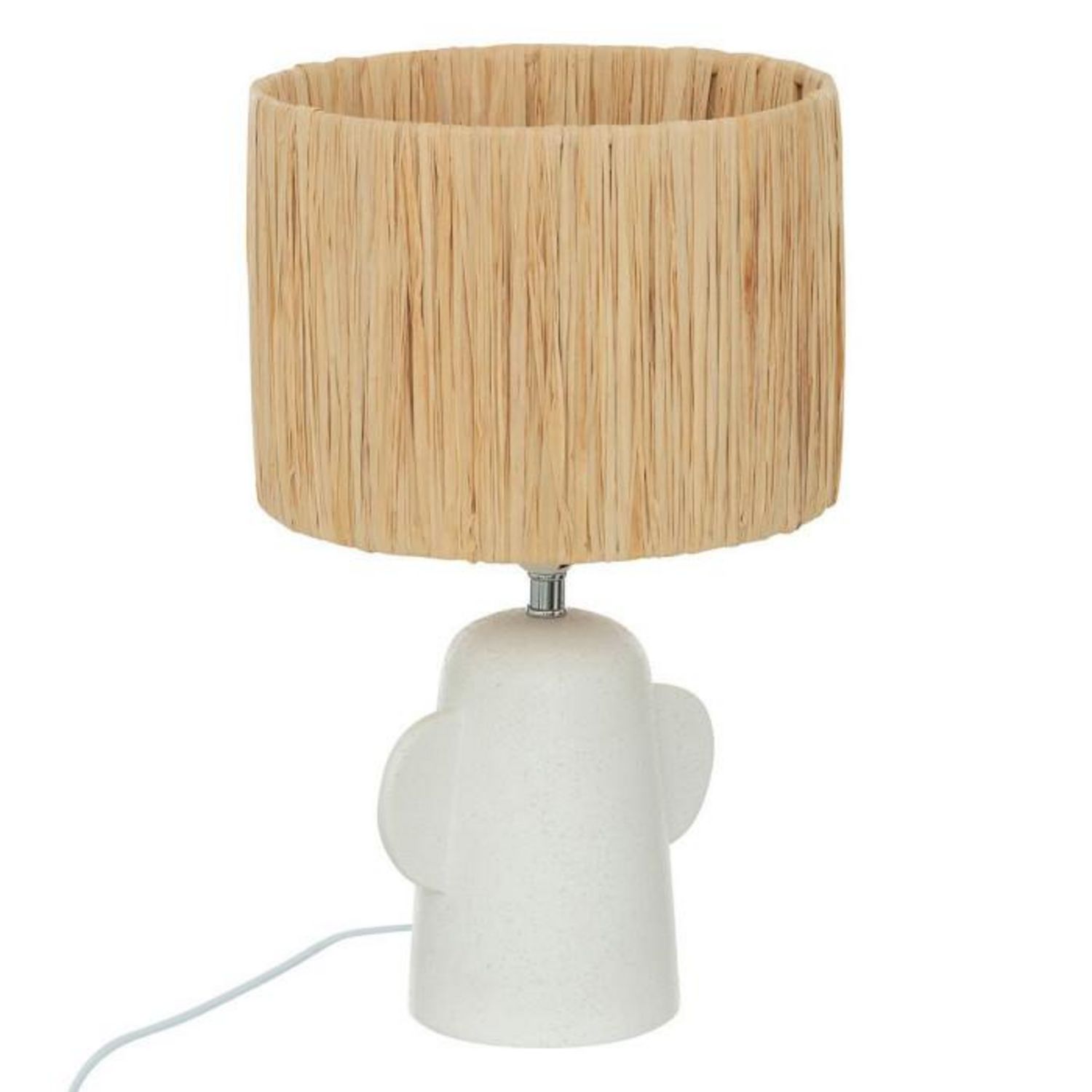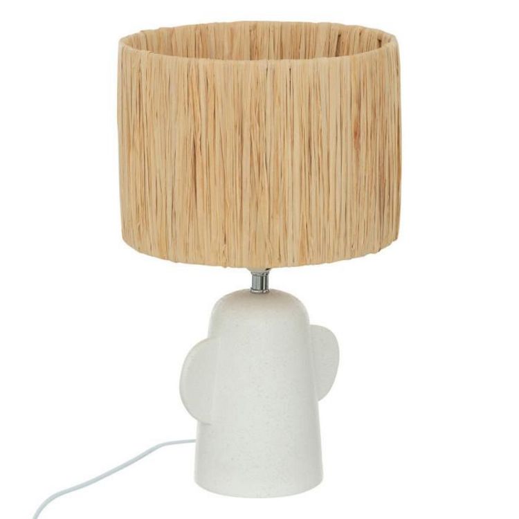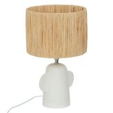 Informations Techniques : Dimensions : D. 25 x H. 38 cm Matières : Dolomite, Acier & Raphia Spécificités : Déco & Utile Lampe à poser design Abat-jour tissé en raphia Pied en céramique Finition brute Interrupteur on/off Douille : E27 IP : IP20 Poids : 0,95 kg Couleur : Blanc & Naturel