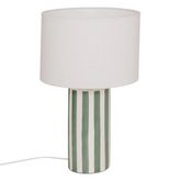 Informations Techniques : Dimensions : D. 28 x H. 47 cm Abat-jour : D. 28 x H. 20 cm Base : D. 12 x H. 24,7 cm Câble : L. 120 cm Matières : Grès & Coton Spécificités : Déco & Utile Lampe de table Imprimé à rayures Abat-jour en tissu Base cylindrique Interrupteur on/off Alimentation secteur Ampoule n