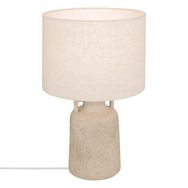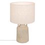 Informations Techniques : Dimensions : D. 28 x H. 45,5 cm Abat-jour : D. 28 x H. 20 cm Base : D. 15 x H. 23 cm Câble : L. 120 cm Matières : Grès & Lin, Coton & Polyester Spécificités : Naturelle & Épurée Lampe de table Avec 2 anses Abat-jour en tissu Pied en grès Interrupteur on/off Ampoule non incl
