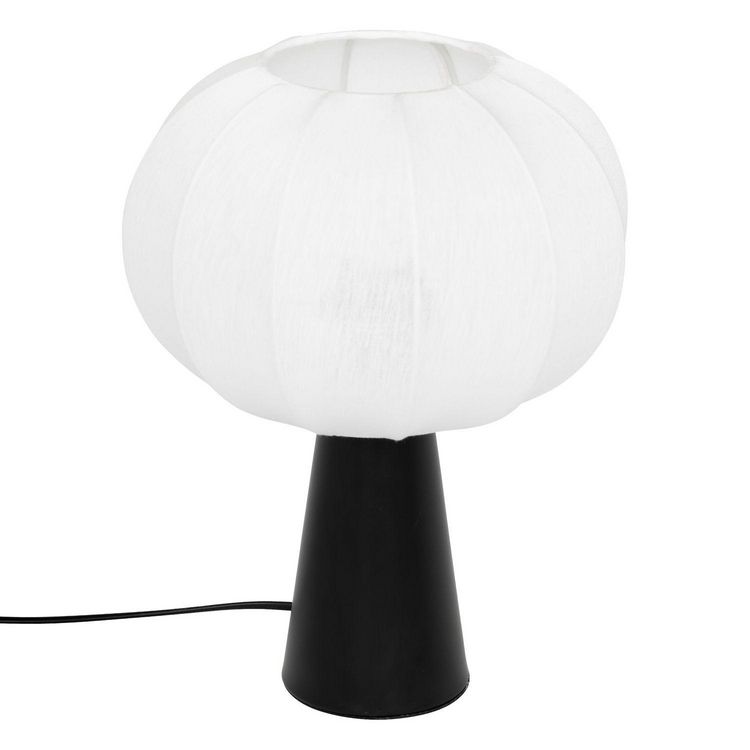 Lampe à poser en métal et coton TOBIE - H. 33 cm - Blanc et noir