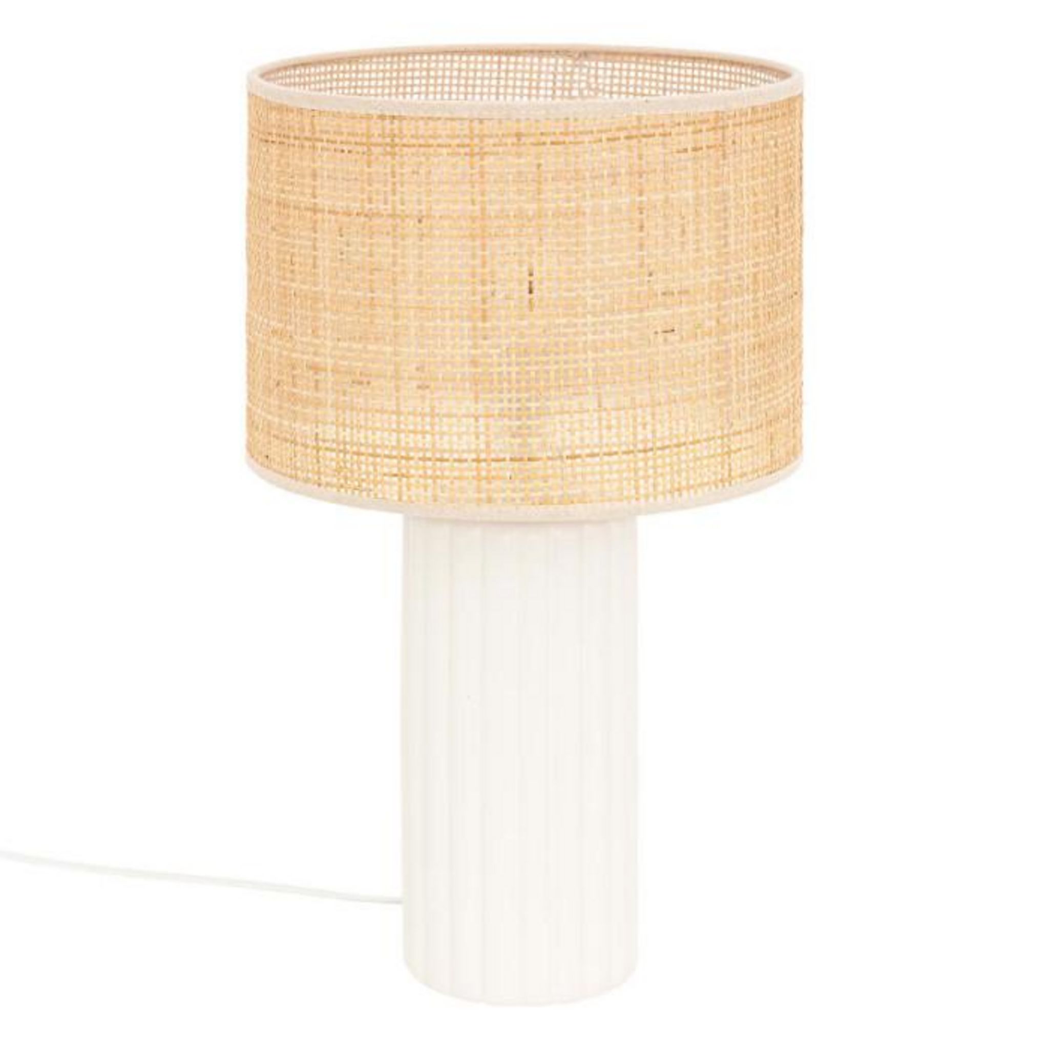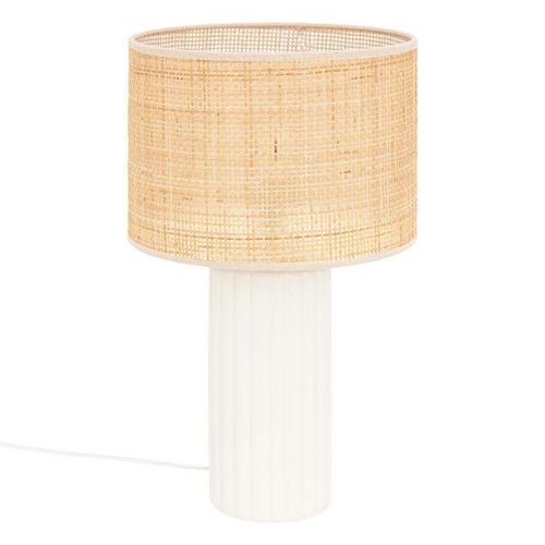 Lampe à Poser en Rotin Tylia 47cm Blanc & Naturel