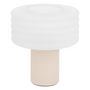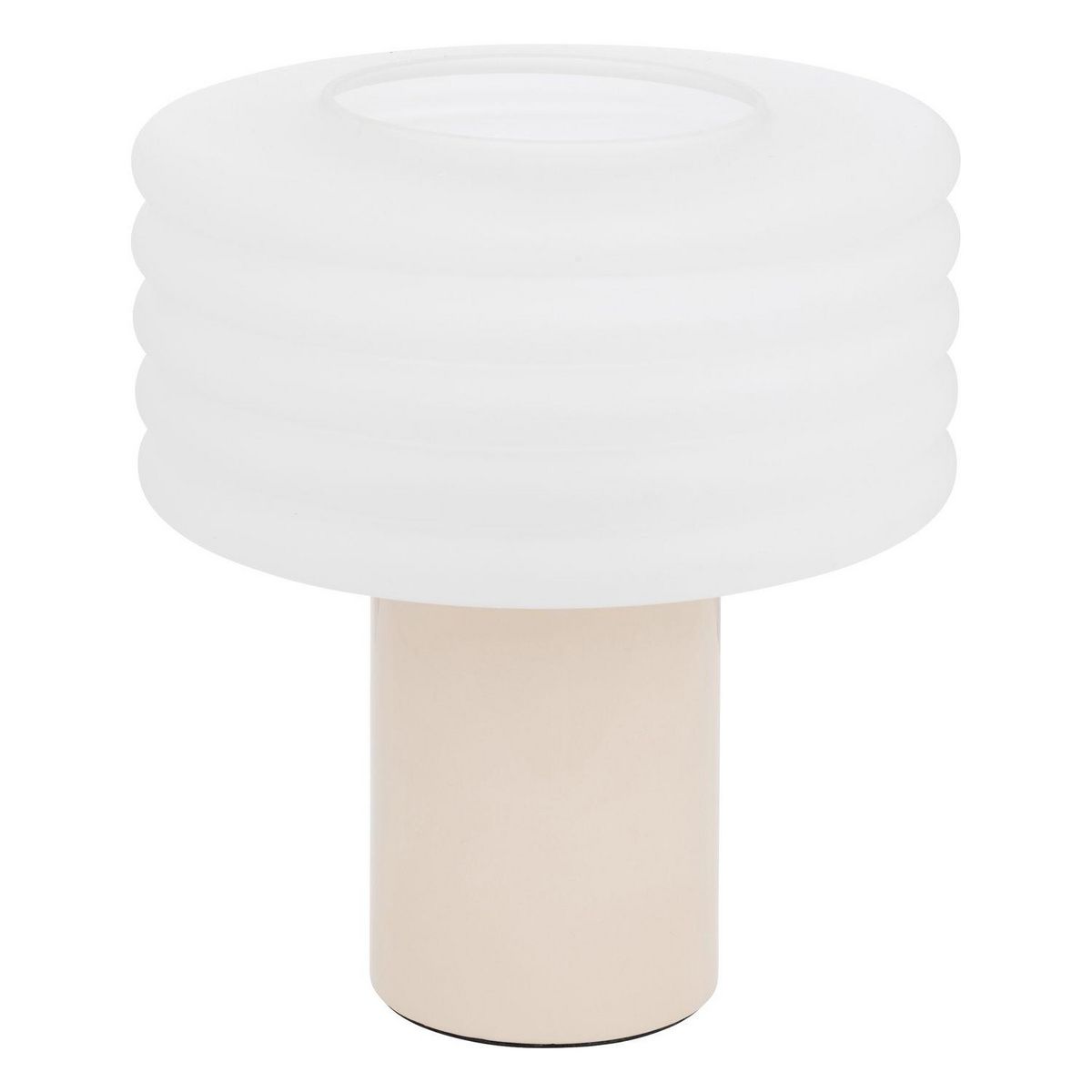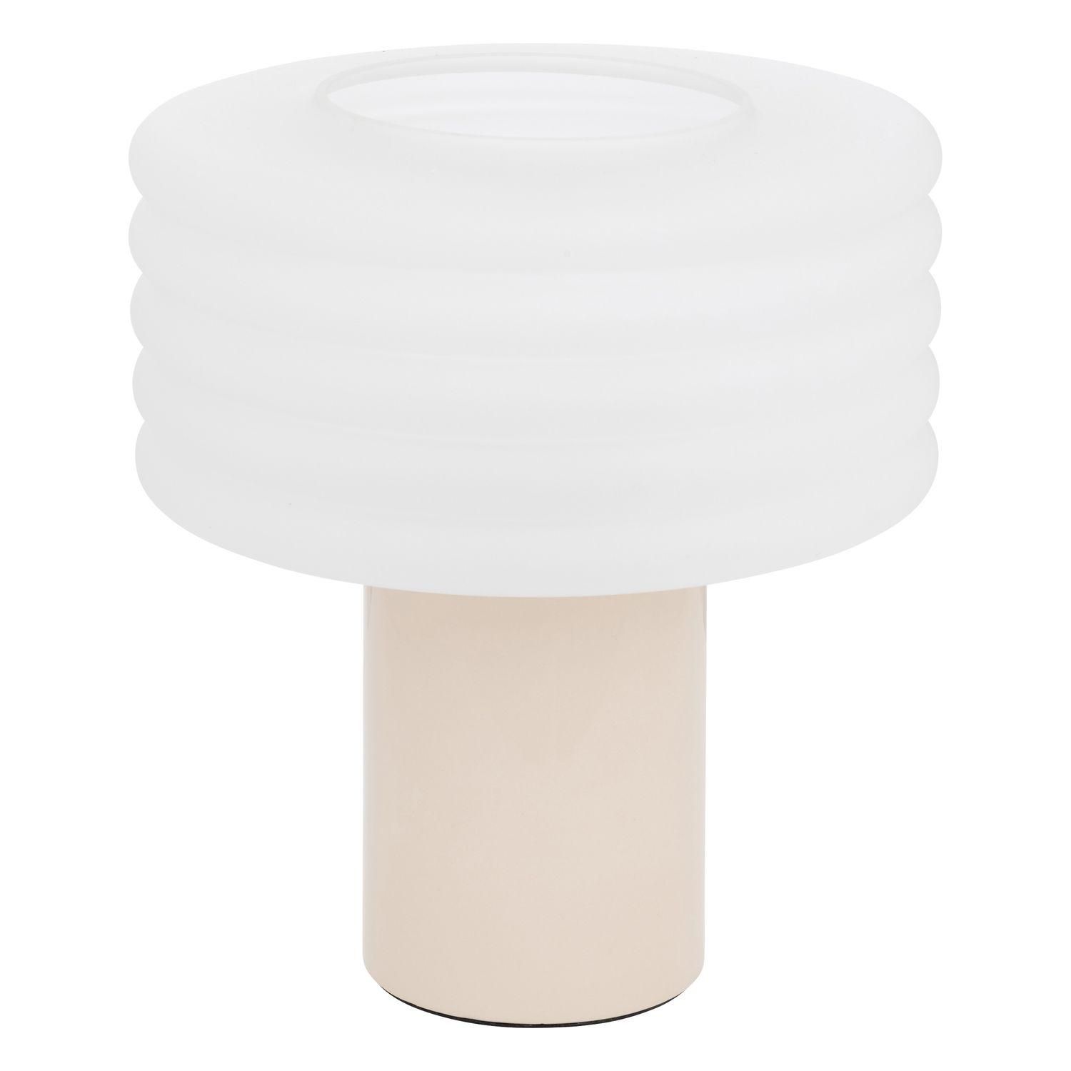 Apportez une touche contemporaine et minimaliste à votre intérieur avec cette lampe de table au design élégant. Son pied cylindrique beige combiné à un abat-jour blanc ondulé crée un jeu de textures subtil, idéal pour diffuser une lumière douce et homogène. Parfaite pour un salon, une chambre ou un