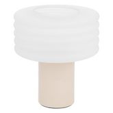 Apportez une touche contemporaine et minimaliste à votre intérieur avec cette lampe de table au design élégant. Son pied cylindrique beige combiné à un abat-jour blanc ondulé crée un jeu de textures subtil, idéal pour diffuser une lumière douce et homogène. Parfaite pour un salon, une chambre ou un bureau, cette lampe s'intègre parfaitement dans les décors modernes ou scandinaves.