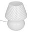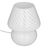 Informations Techniques : Dimensions : L. 15 x l. 15 x H. 18 cm Câble : L 150 cm Matière : Verre Spécificités : Rétro & Élégante Abat-jour strié Design champignon Douille : E14 Puissance : 25W IP : IP20 Poids : 0,61 kg Couleur : Blanc