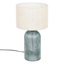Informations Techniques : Dimensions : D. 24 x H. 42,5 cm Abat-jour : L. 24 x l. 24 x H. 17 cm Base : D. 12,6 x H. 23,5 cm Câble : L. 120 cm Matières : Abat-jour : Lin & Polyester Base : Verre Spécificités : Utile & Élégante Lampe à poser design Base cylindrique Interrupteur on/off Douille : E14 Pui