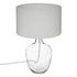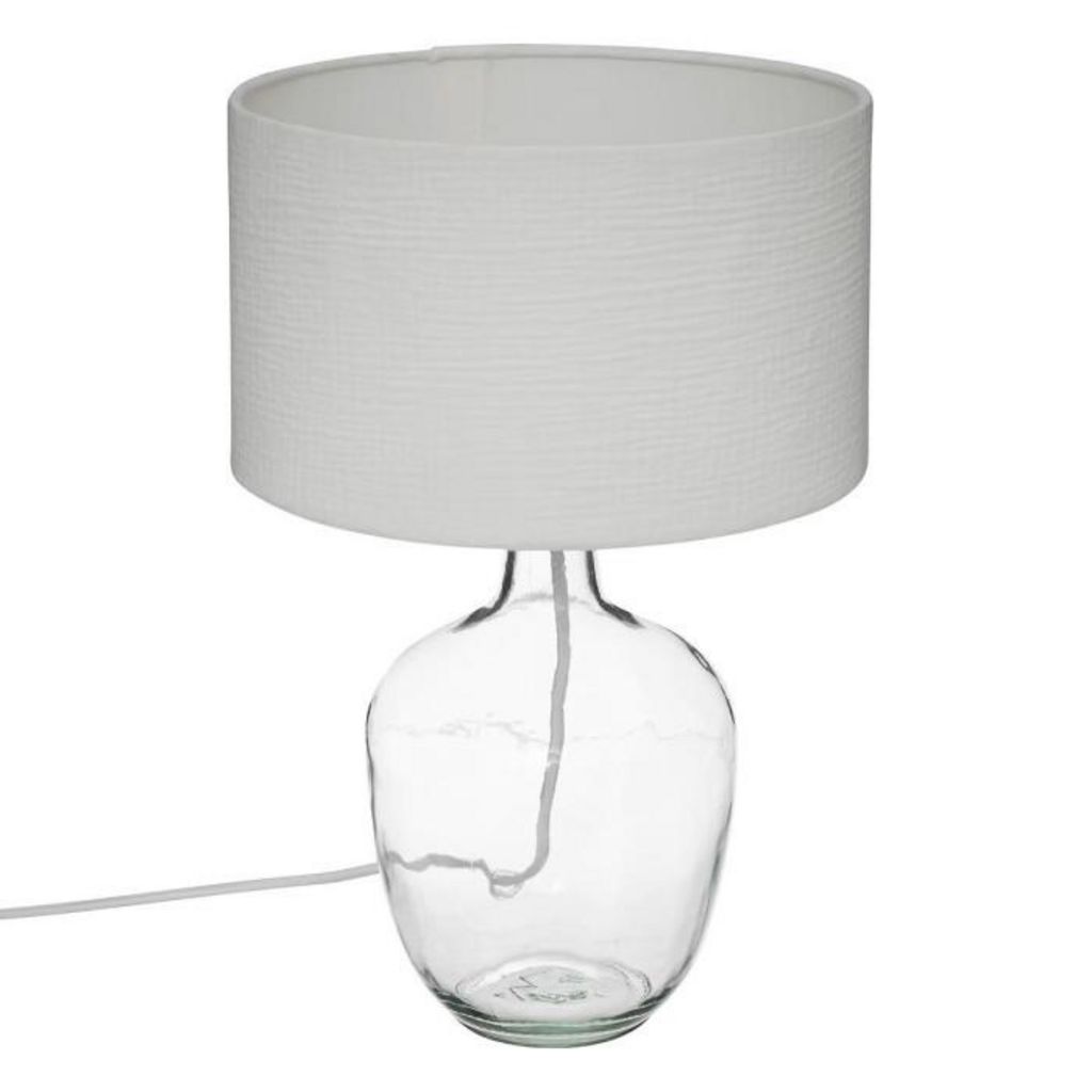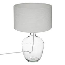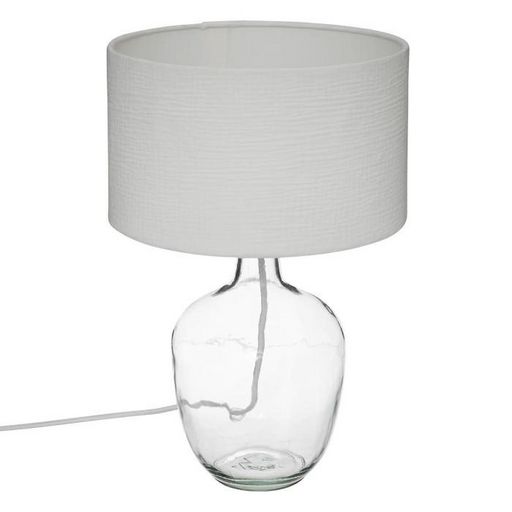 Informations Techniques : Dimensions : D. 27 x H. 43,5 cm Matières : Verre & Coton Spécificités : Élégante & Utile Interrupteur on/off Forme ronde Ampoule non incluse Poids : 1,28 kg Couleur : Blanc
