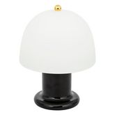 Informations Techniques : Dimensions : D. 16 x H. 21 cm Abat-jour : D. 16 x H. 11 cm Base : D. 10 x H. 12,5 cm Matières : Verre & Acier Spécificités : Rétro & Pratique Lampe de table à LED Piles non incluses Type de piles : 3 x LR03 / AAA - 1,5 V Eclairage : LED blanc chaud Puissance : 36 lumen Temp