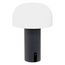 Informations Techniques : Dimensions : D. 15 x H. 22 cm Abat-jour : D. 15 x H. 8,5 cm Matières : Abat-jour : Polypropylène Base : Acier Spécificités : Pratique & Utile Lampe d'extérieur tactile à LED Recharge via câble USB-C Piles incluses Éclairage : LED blanc chaud Température LED : 3000K Tension