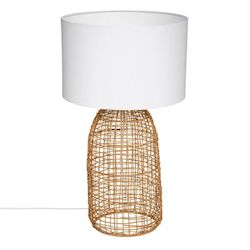 Informations Techniques : Dimensions : D. 32 x H. 55 cm Abat-jour : D. 32 x H. 20 cm Câble : L. 150 cm Matières : Polyester, Coton, Rotin, Fer & PVC Spécificités : Design & Pratique Lampe à Poser Forme Cylindrique Alimentation Secteur Ampoule non incluse Douille E27 Puissance : 25W Type de Fixation