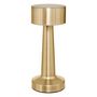 Informations Techniques : Dimensions : D. 9 x H. 21,5 cm Matière : Acier Spécificités : Pratique & Utile Lampe d'extérieur design Pile incluse Type de piles : 1 x lithium ion 18650 Poids : 0,25 kg Couleur : Doré