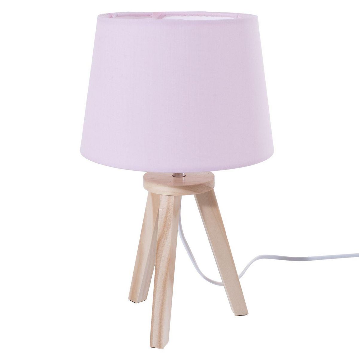 Sobre et altique, cette lampe, à 3 pieds, trouvera facilement sa place sur la table de chevet de votre princesseFICHE TECHNIQUE- Alimentation : sur Secteur- Puissance max : 25W- Type de culot : E14- Couleur : Rose- Structure en bois.- Abat jour en polyester- Ampoule non incluse.CARACTERISTIQUES TECH