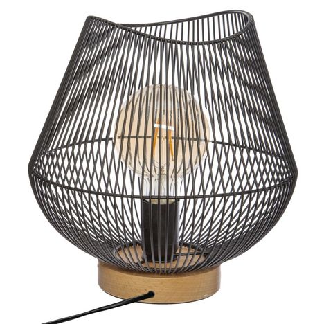 Pensez à cette lampe design pour décorer votre intérieur. Elle trouvera facilement sa place chez vous.FICHE TECHNIQUE- Lampe à poser.- Modèle filaire.- Gamme Jena.- Alimentation sur secteur.- Couleur : Noir.- Matière : Fer.- matière du socle : bois de Hêtre.- Ampoule non incluse.- Alimentation sur S