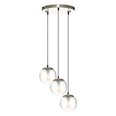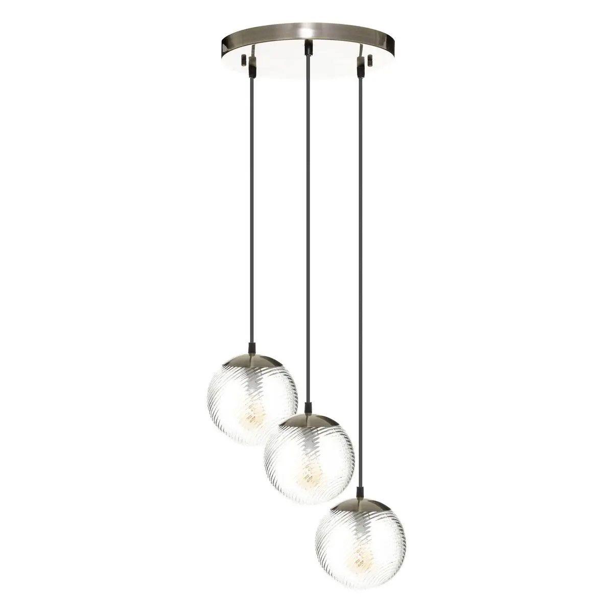 Informations Techniques : Dimensions : L. 35,8 x l. 33,5 x H. 93,6 cm Abat-Jour : D. 15 cm Câble : L. 45-55-65 cm Matières : Verre & Fer Spécificités : Déco & Tendance Lampe Suspension 3 Têtes Hauteur Ajustable Douille E14 Puissance Maximale : 25W Classe : 2 Poids : 0,44 kg Couleur : Or