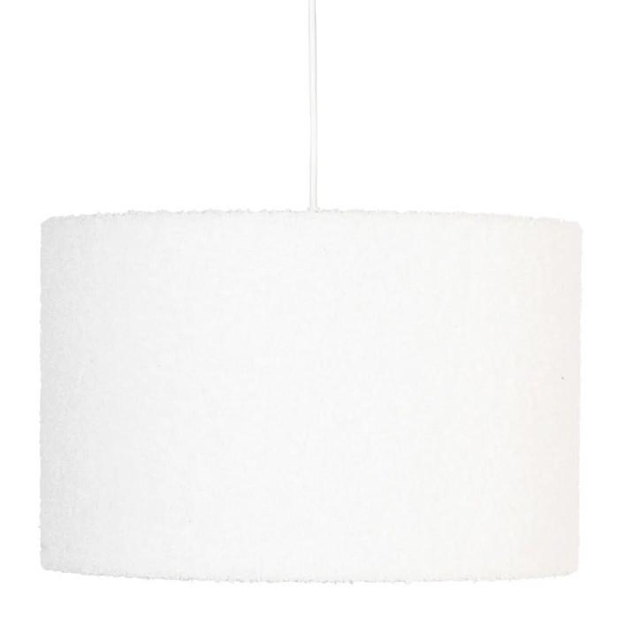Informations Techniques : Dimensions : D. 37 x H. 108 cm Abat-jour : D. 37 x H. 24 cm Câble : L. 80 cm Matières : Acier, PVC & Polyester Spécificités : Tendance & Utile Suspension tissu bouclette Ampoule non incluse Douille : E27 Puissance : 25W Poids : 0,5 kg Couleur : Blanc