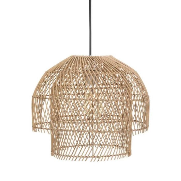 Informations Techniques : Dimensions : D. 38 x H. 30 cm Câble : L. 80 cm Matières : Fer & Rotin Spécificités : Pratique & Utile Lampe Suspension Douille E27 Hauteur Ajustable Puissance Maximale : 40W Ampoule non incluse Classe : 2 Poids : 1,31 kg Couleur : Beige