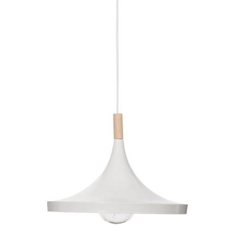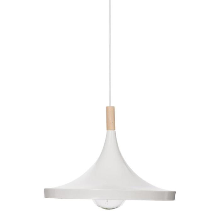 Lampe Suspension Design Métal & Bois 32cm Blanc