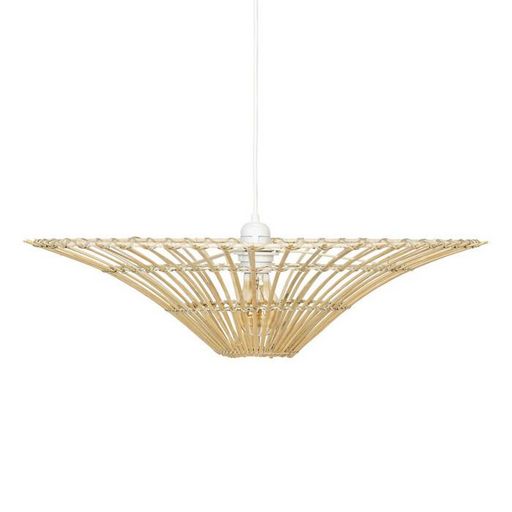 Informations Techniques : Dimensions : D. 56 x H. 98 cm Abat-jour : D. 56 x H. 14 cm Câble : L. 80 cm Matières : Bambou & Acier Spécificités : Déco & Réversible Suspension ajouré Abat-jour en bambou Hauteur ajustable Ampoule non incluse Douille : E27 Puissance : 40W IP : IP20 Poids : 0,79 kg Couleur
