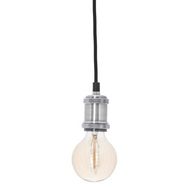Informations Techniques : Dimensions : D. 5 x H. 7 cm Base : D. 5 x H. 8,5 cm Câble : L. 98 cm Matière : Aluminium Spécificités : Pratique & Utile Lampe Suspension Hauteur Ajustable Alimentation Secteur Douille E27 Puissance Maximale : 40W Ampoule non incluse Classe 2 Poids : 0,25 kg Couleur : Argen