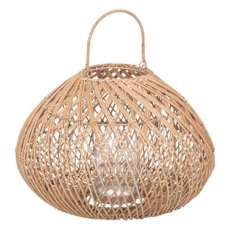 Informations Techniques : Dimensions : D. 37 x H. 38 cm Matières : Rotin & Fer Spécificités : Pratique & Utile Lanterne Design Forme Ronde Avec Anse Bougie non incluse Poids : 1,15 kg Couleur : Beige