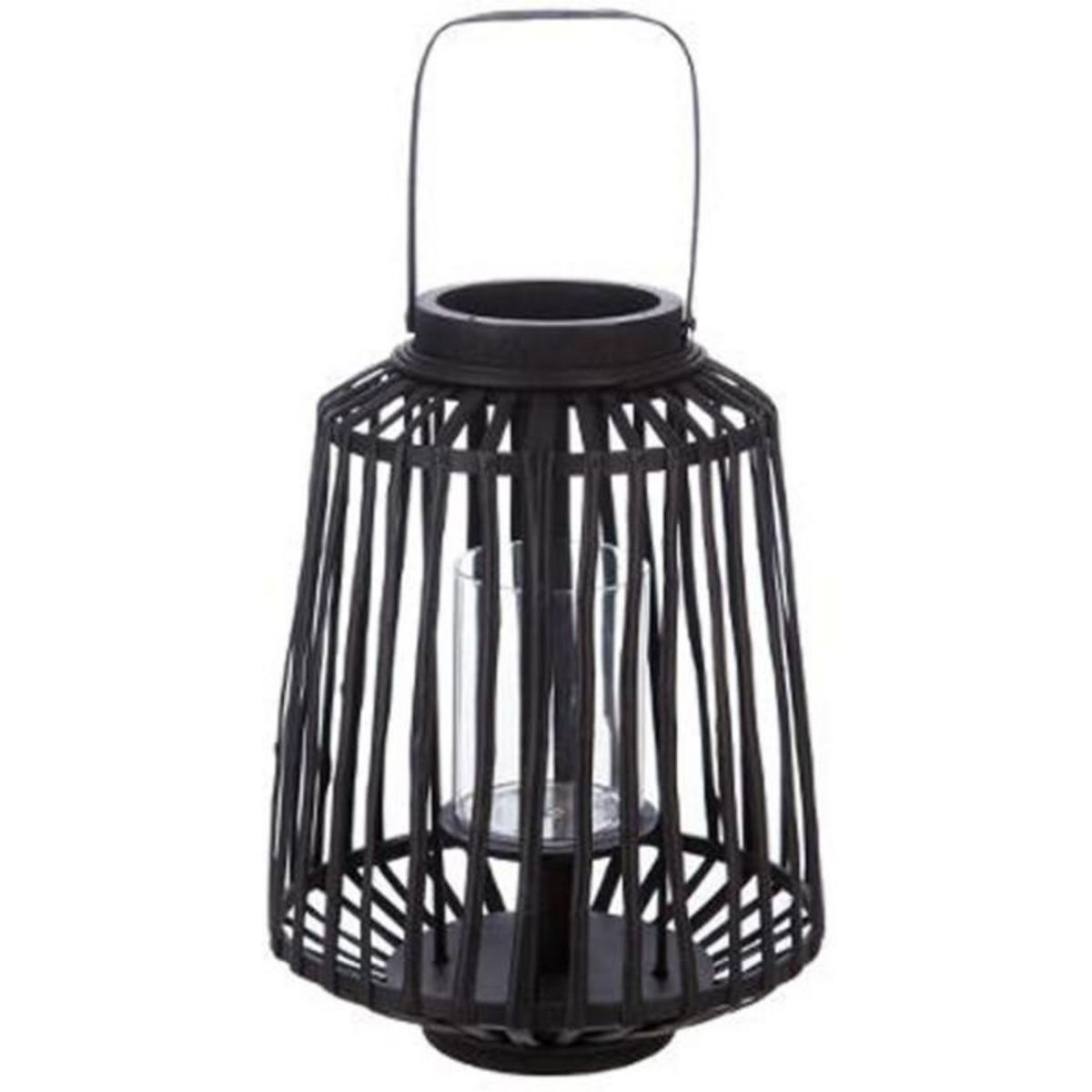 Informations Techniques : Dimensions : Lanterne : D. 25 x H. 35 cm Matière : Verre & Rotin Spécificités : Design & élégant Photophore inclus Poids : 1.1 kg Couleur : Noir