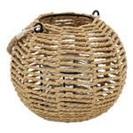 Informations Techniques : Dimensions : D. 18 x H. 15 cm Matières : Jute, Verre, Papier & Acier Spécificités : Déco & Tendance Lanterne ronde Anse en jute Support en verre Poids : 0,38 kg Couleur : Naturel