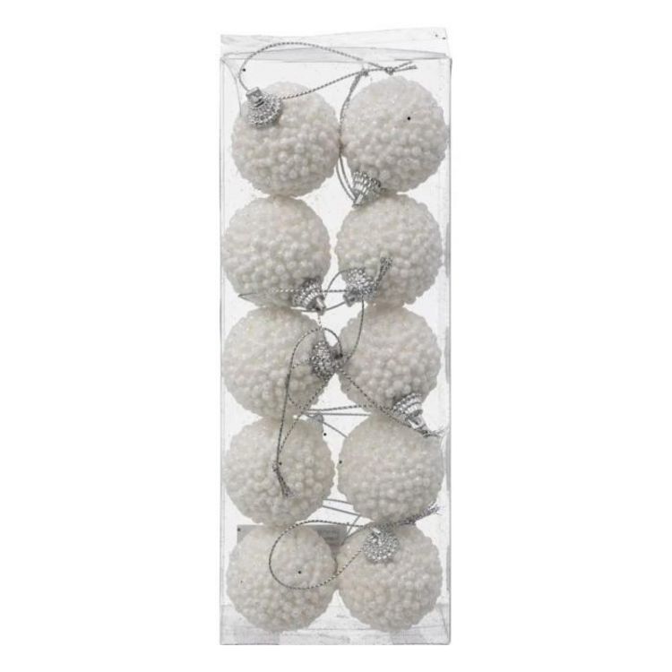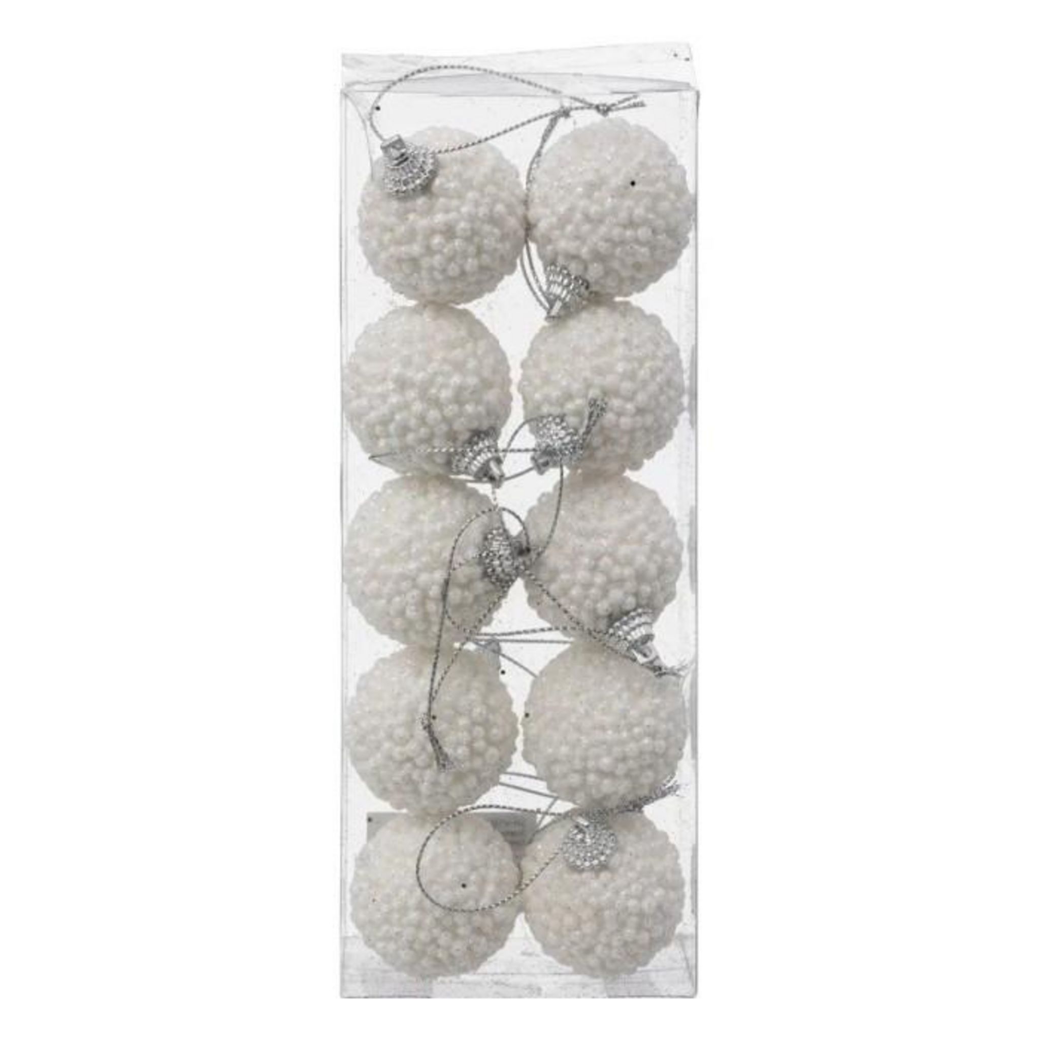 Lot de 10 Boules de Noël Petites Billes 4cm Blanc