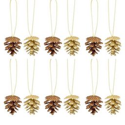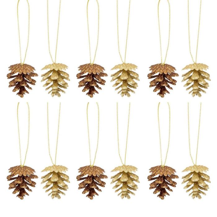 Lot de 12 Sujets de Noël Pommes de pin 3cm Or & Bronze