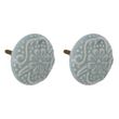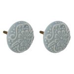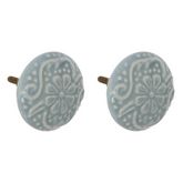 Informations Techniques : Dimensions : D. 4,5 x H. 5,2 cm Matières : Grès & Métal Spécificités : Déco & Pratique Lot de 2 boutons de meuble Motif floral Forme ronde Poids : 0,05 kg Couleur : Bleu
