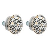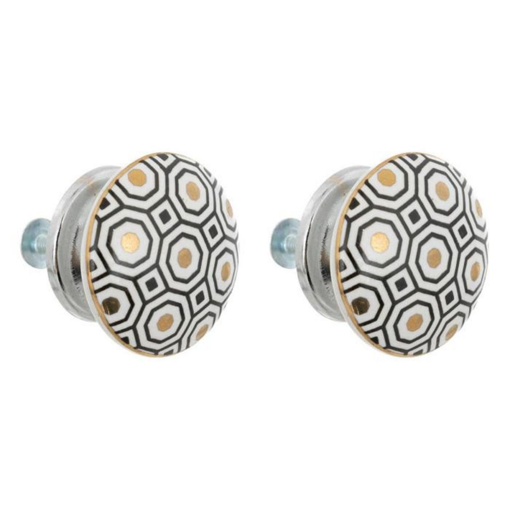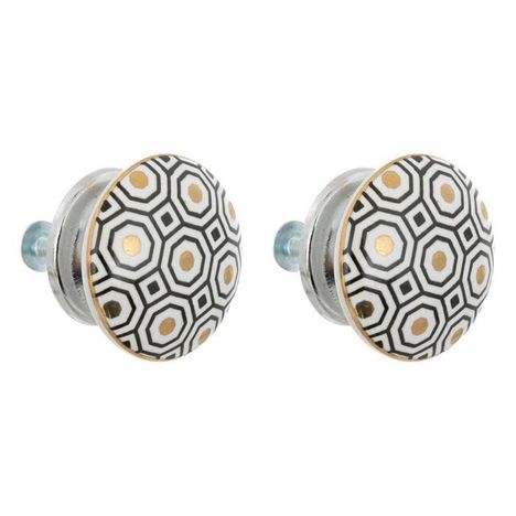 Informations Techniques : Dimensions : D. 4 x H. 4,6 cm Matières : Grès & Métal Spécificités : Déco & Pratique Lot de 2 boutons de meuble Motif imprimé Forme ronde Poids : 0,03 kg Couleur : Blanc