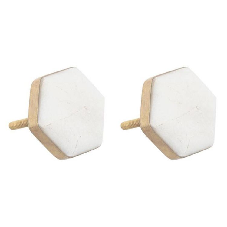 Informations Techniques : Dimensions : D. 4,2 x H. 5,3 cm Matière : Laiton Spécificités : Déco & Pratique Lot de 2 boutons de meuble Effet marbre Forme hexagonale Poids : 0,05 kg Couleur : Blanc
