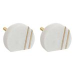 Informations Techniques : Dimensions : D. 4 cm Matière : Laiton Spécificités : Déco & Pratique Lot de 2 boutons de meuble Effet marbre À fixer Forme ronde Poids : 0,04 kg Couleur : Blanc