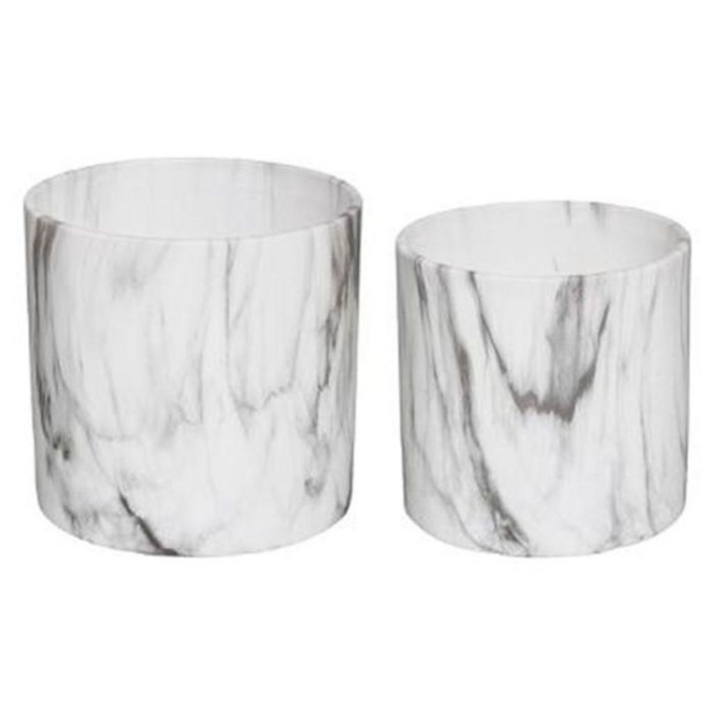 Lot de 2 Cache-Pots Effet Marbre 14cm Noir & Blanc