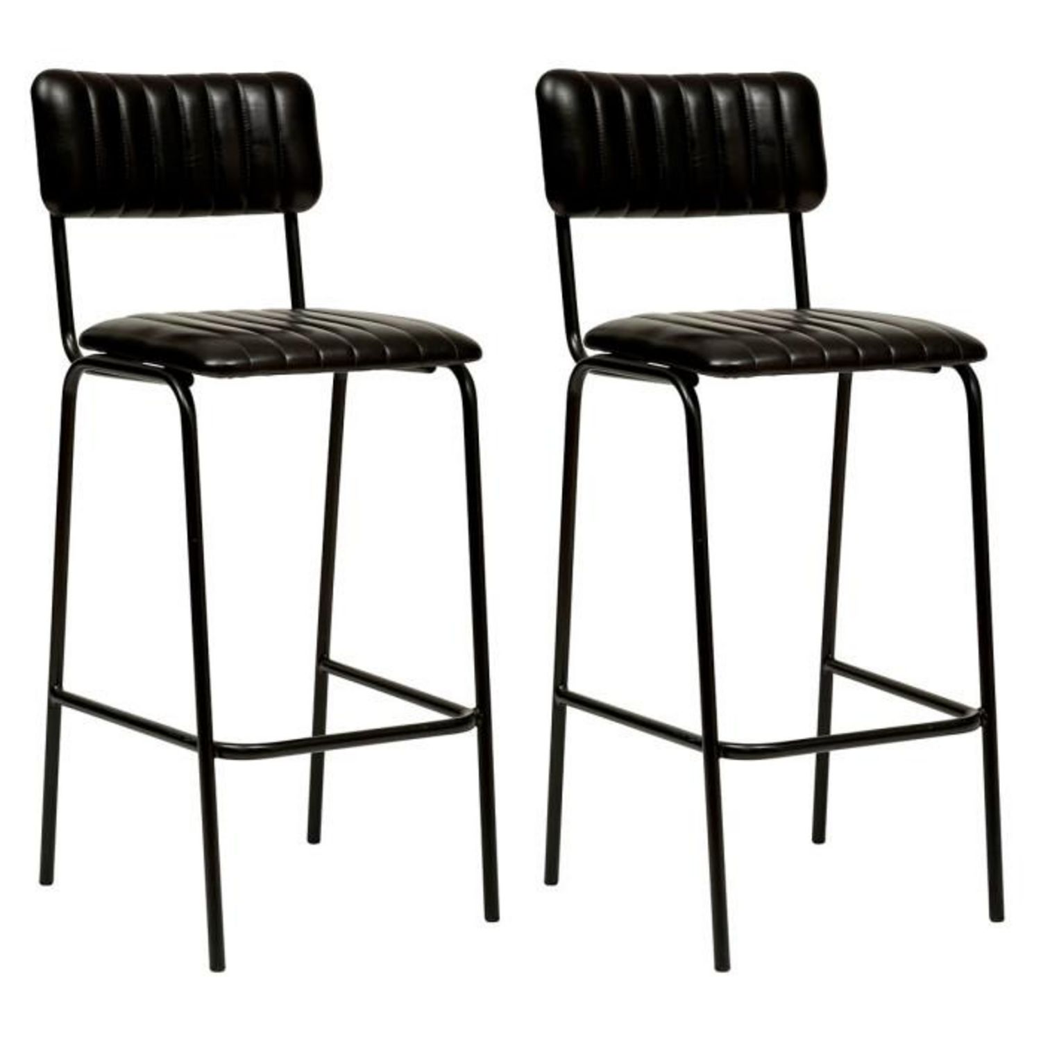 Informations Techniques : Dimensions : L. 45 x l. 53 x H. 103 cm Assise : H. 73 cm Matières : Revêtement : Cuir Naturel Rembourrage : Mousse de Polyuréthane Structure : Métal Spécificités : Confortable & Élégant Lot de 2 chaises de bar À monter soi-même Poids : 6,5 kg (à l'unité) Couleur : Noir