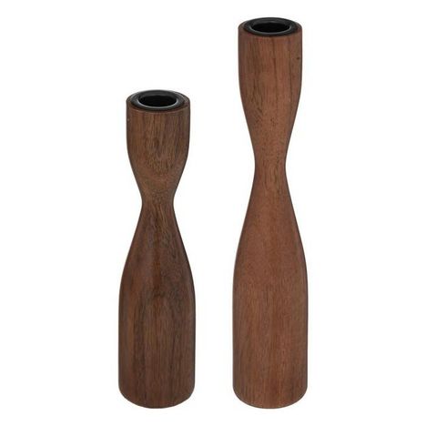 Informations Techniques : Dimensions : D. 5 x H. 25 cm 2 tailles différentes Matières : Bois (Manguier) & Métal Spécificités : Pratique & Déco Lot de 2 chandeliers design Poids : 0,352 kg Couleur : Marron