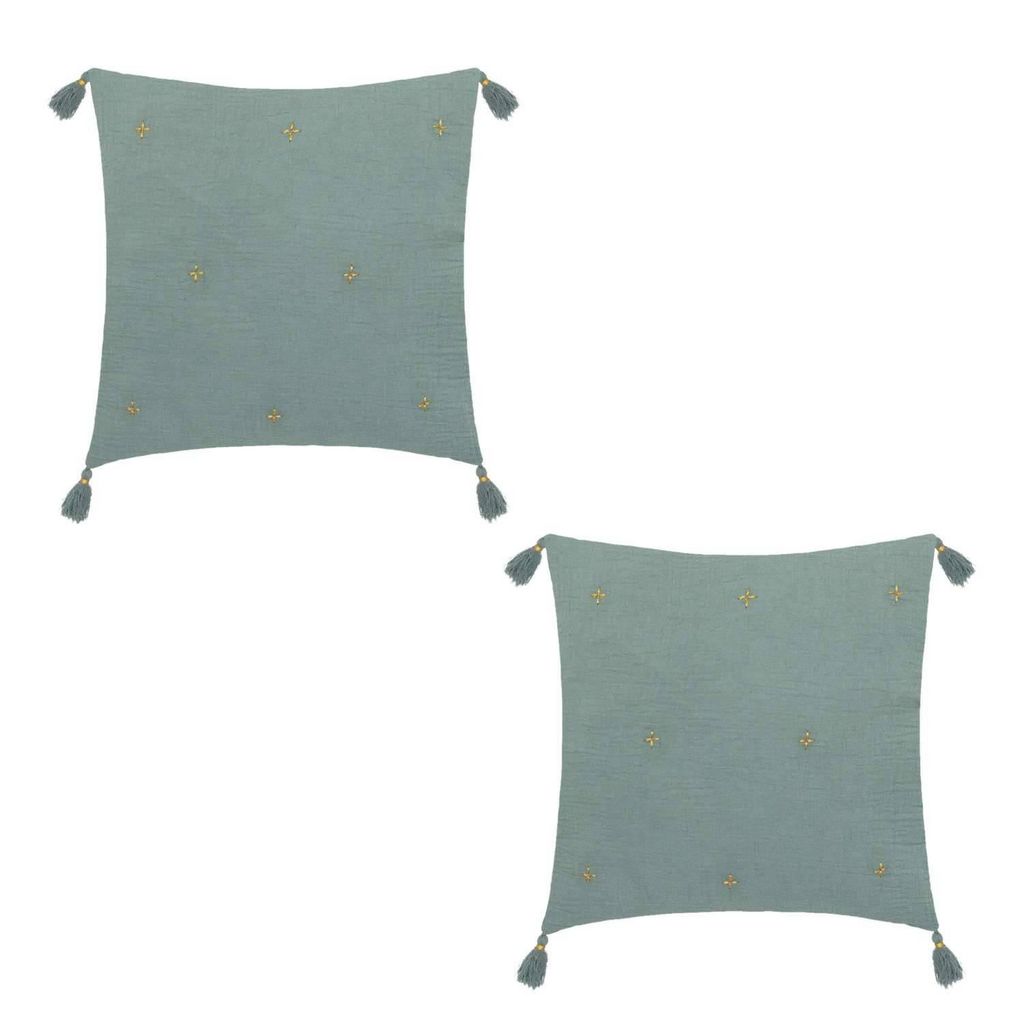 Lot de 2 coussins de chaise brodés rectangulaires Starke - 40 x 40 cm - Céladon