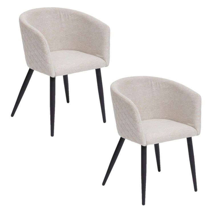 Lot de 2 fauteuils de table Aubin en tissu effet matelassé - Beige