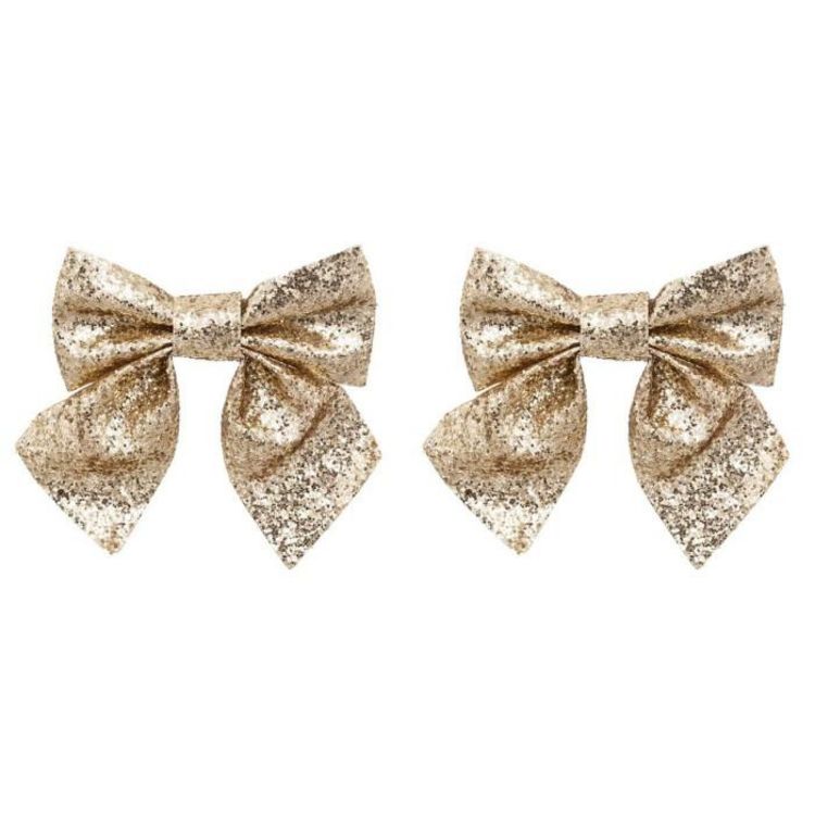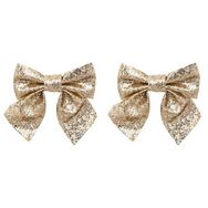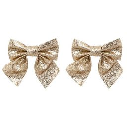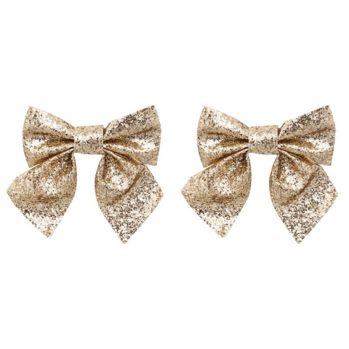 Lot de 2 Nœuds Déco Paillettes 16cm Or