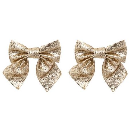 Informations Techniques : Dimensions : L. 14 x l. 2 x H. 16 cm Matière : Polyester Spécificités : Pratique & Utile Lot de 2 Noeuds Déco Avec Paillettes Poids : 0,015 kg Couleur : Or